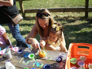 We went to Cristian's 4th birthday party at an Exotic Zoo/Pumpkin Patch!! What a great place to have a birthday party! Jersi got to pet Lama's, Miniature Pony's, a baby pig, kangaroo, and deer! We also painted a pumpkin and had a great time throwing pumpkins! She thought they were balls! This is our second year at the pumpkin patch last year she slept through most of the adventure so this year was much better!! We ate pizza, cake, and even got to hit the pinata'! Thanks to Missy and Cristian for a wonderful time!